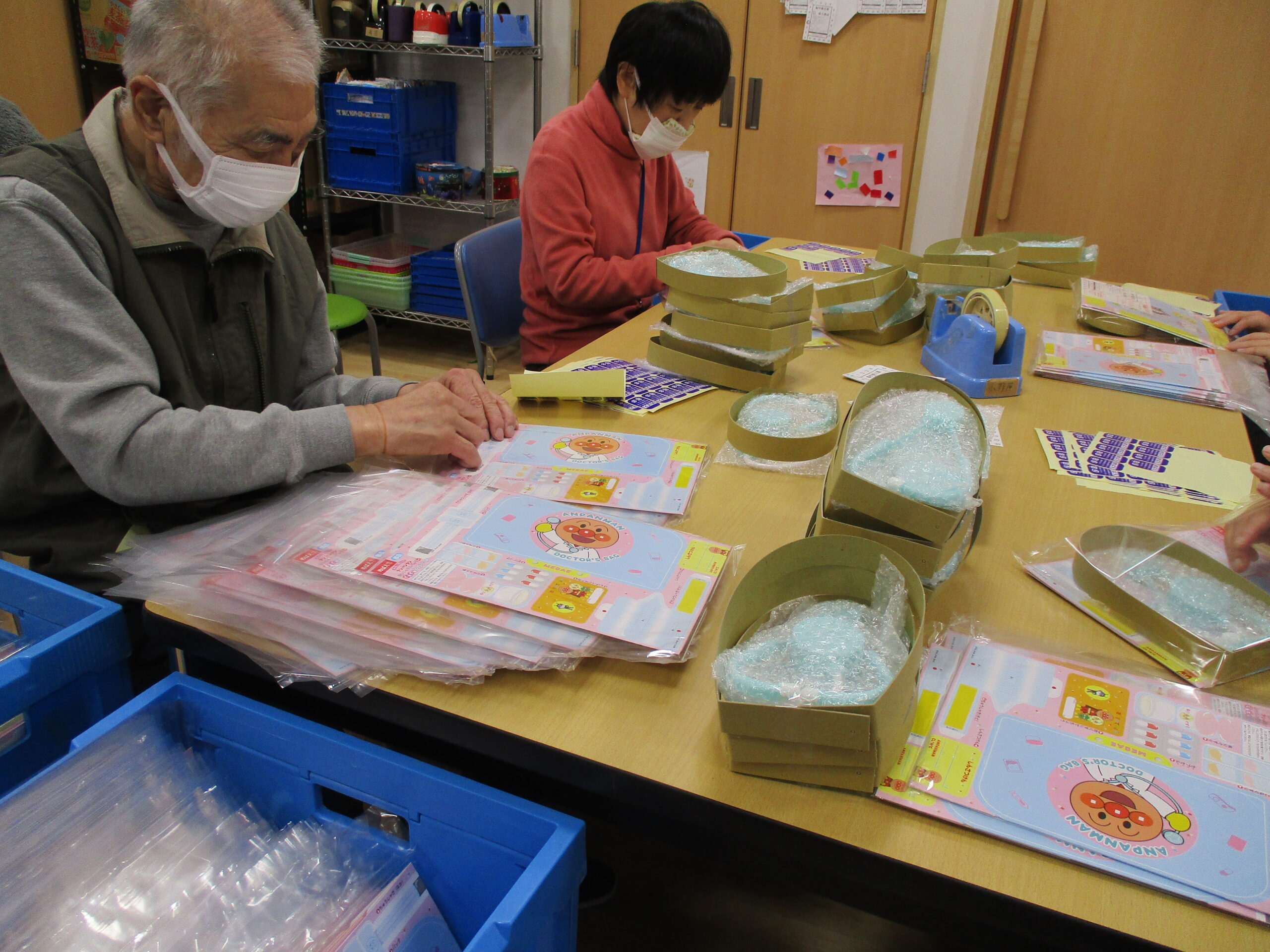 作業を通して社会参加の意識を高め、併せて日々の充足感を得るための支援を行います。例えば、下請け軽作業等、ポスティング、野菜販売などさまざまな活動があります。また、身体機能の回復及び低下予防を兼ね、看護師をまじえ適宣リハビリ的運動も行います。余暇の活動では各々の趣向するところを尊重して、適宣に援助し、施設の内外で、カラオケ・ダンス・散歩・お茶会・外食等を行います。