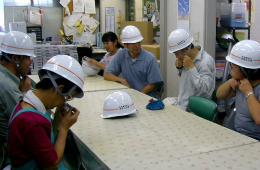 昨年度より、火災訓練の他に地震訓練を導入し、ヘルメット着用を意識して訓練を行っています。災害種類や発生場所を変える等、「実際に起こり得る」を意識した訓練を目指しています。利用者の方を安全に避難させるだけでなく、職員の初動対応も重要課題としています。また、作業所内には防災設備を設置し、万全を期しておりますので安心して作業が出来ます。