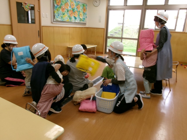 さざんかキッズでは防災訓練を毎月行なっており、今月も実施されました。