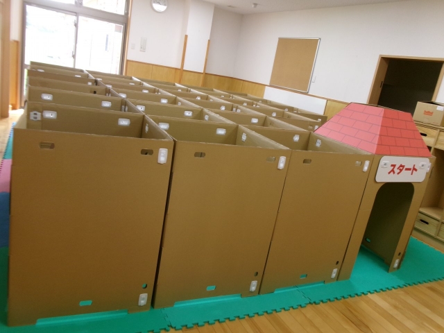 サーキットや段ボール迷路、ボールサーフィン、スタンプ製作等の各コーナーを設けて、大好きなママ・パパと一緒に楽しみました!