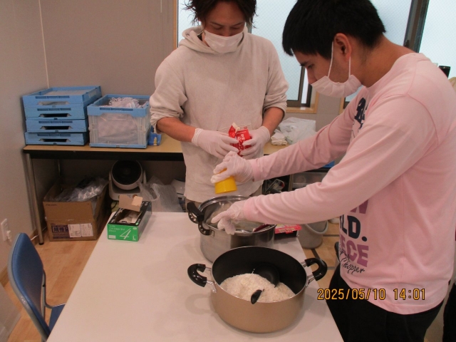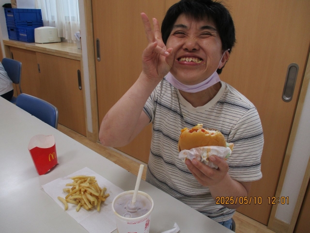 5月土曜開所日 2025年05月10日 こんにちは!カメリアハウスです(^^) 新年度が始まり気が付けば5月ですね…。暑い日も増えてきていますが、皆さん元気に活動に参加されています! 5月の開所日は、外食に行くグループもあればデザートを作るグループもありました。 あいにくの天候でしたが、それぞれ楽しまれていたようです♪