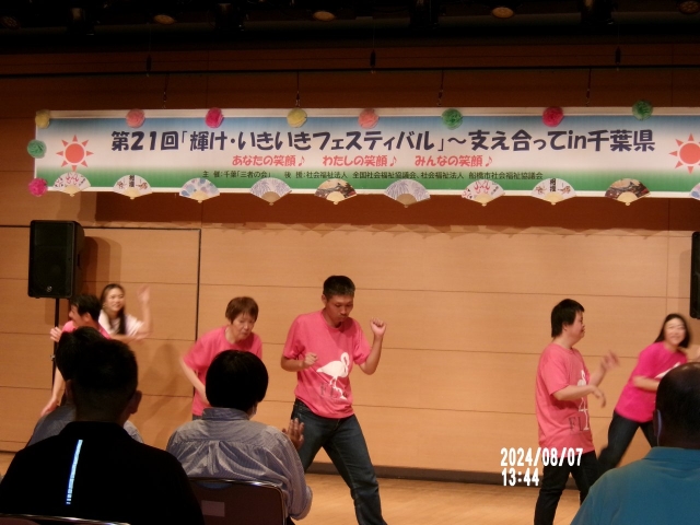 いきいきフェスティバルに参加しました! 2024年08月16日 いきいきフェスティバル 8月7日(水)に船橋市で開催されたいきいきフェスティバルに参加してきました。 当日は日頃、練習を頑張っている利用者さんのダンス発表と手工芸品の販売を行い大盛況でした(^^♪ 参加された利用者さん、ボランティアの皆さんお疲れさまでした!