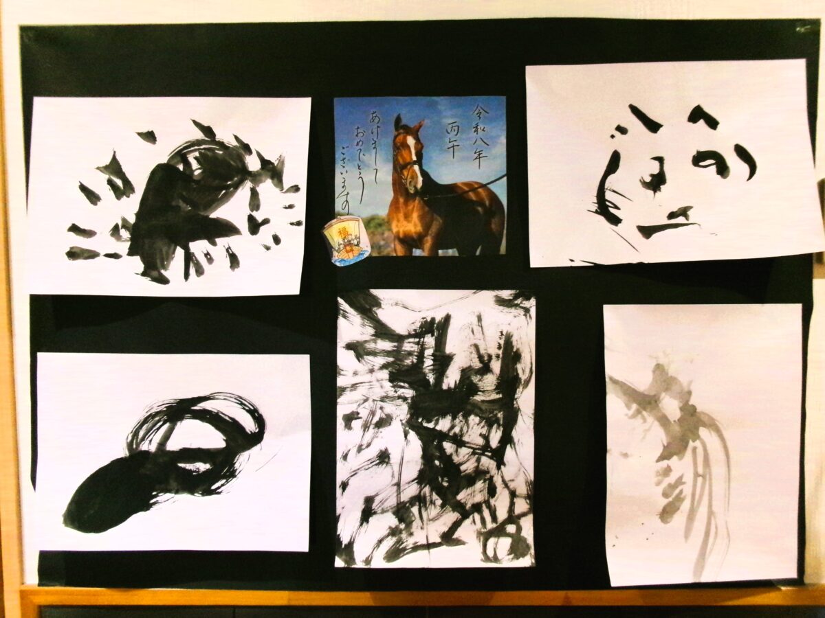また、にじ組は書き初めを行ないました。子ども達だけではなく、保護者の方も参加し、一年の抱負や好きな言葉を書き上げていただきました。